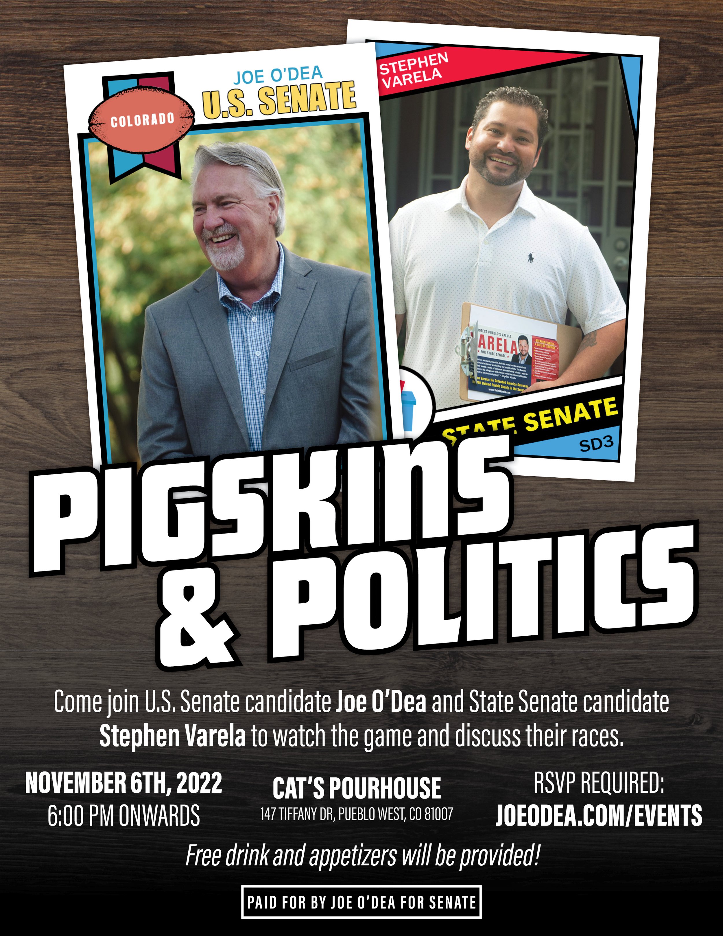 Come join U.S. Senate candidate Joe O’Dea and State Senate candidate Stephen Varela (Senate District 3) to watch the game and discuss their races.